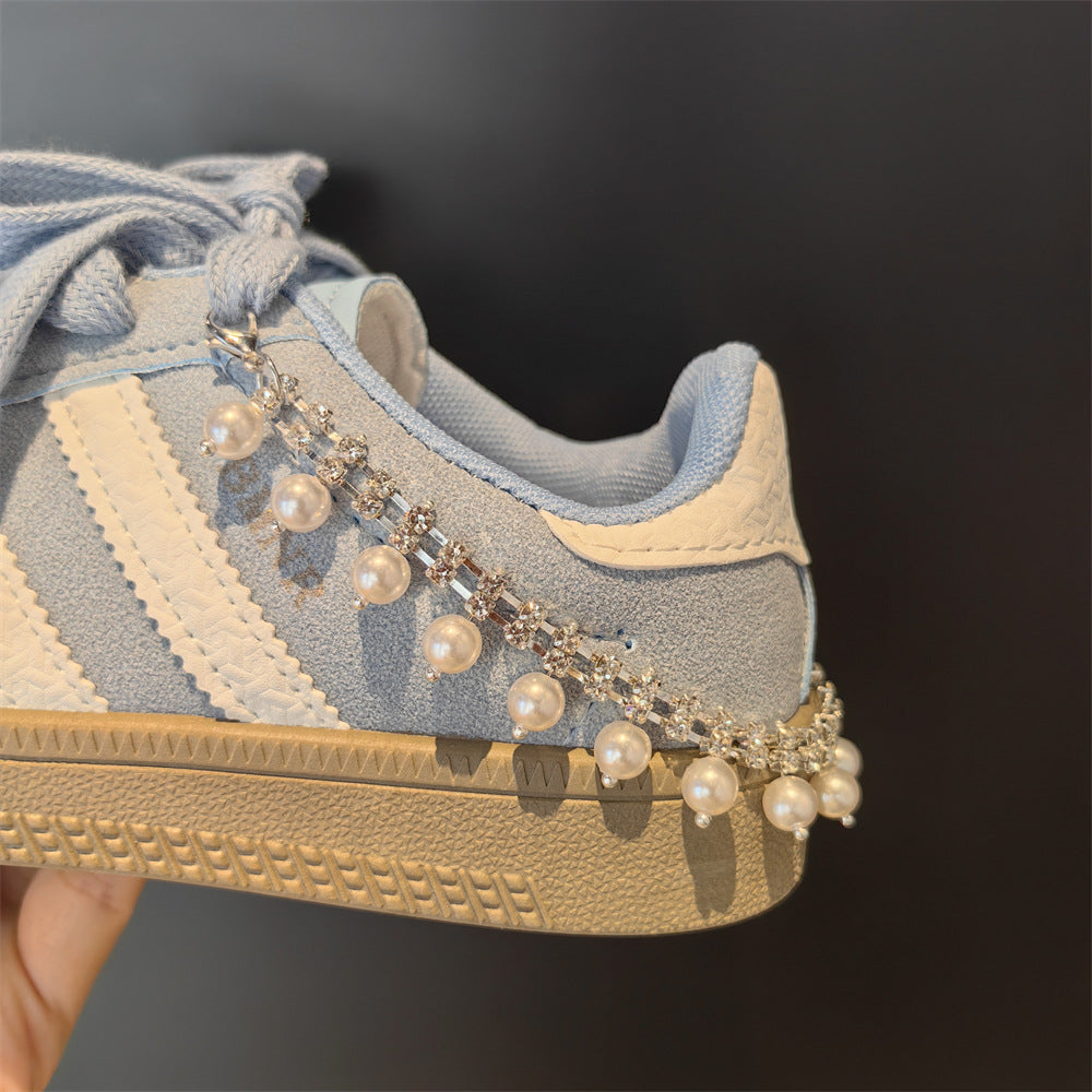 1 pair bling dimond, pearl and butterfly shoe chain for leather shoes, sneakers and sambas